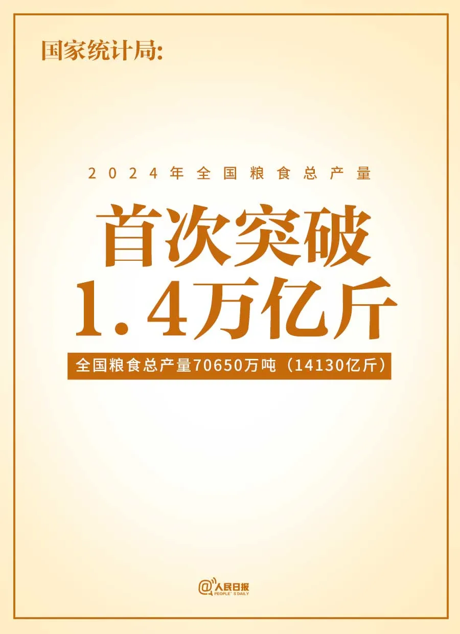 國(guó)家統(tǒng)計(jì)局關(guān)于2024年糧食產(chǎn)量數(shù)據(jù)的公告